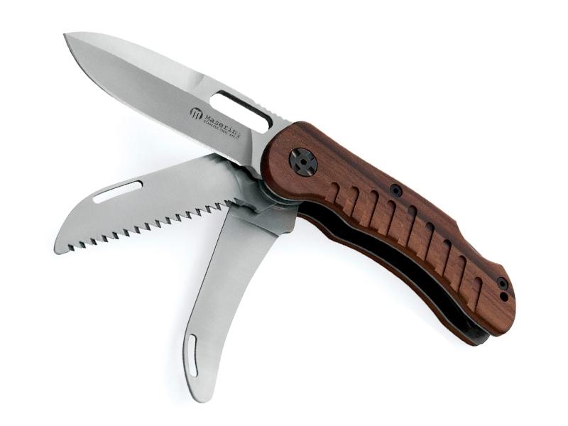 Couteau de chasse Maserin Jager 3 pièces - manche 12 cm bois de santonsCouteau pliant de chasse Maserin Jager 3 pièces - manche 12 cm bois de santons