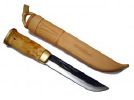 Les lames sont faites en acier carbone de haute qualité, avec 0,8% de carbone et une dureté de 59 à 60 HRC. Elles restent acérées longtemps mais également faciles à affûter. Vous le remarquerez encore mieux une fois que vous tiendrez un authentique couteau nordique Puukkopaja entre vos doigts, la courbure de la lame vous assurera un confort de coupe parfait et très agréable.