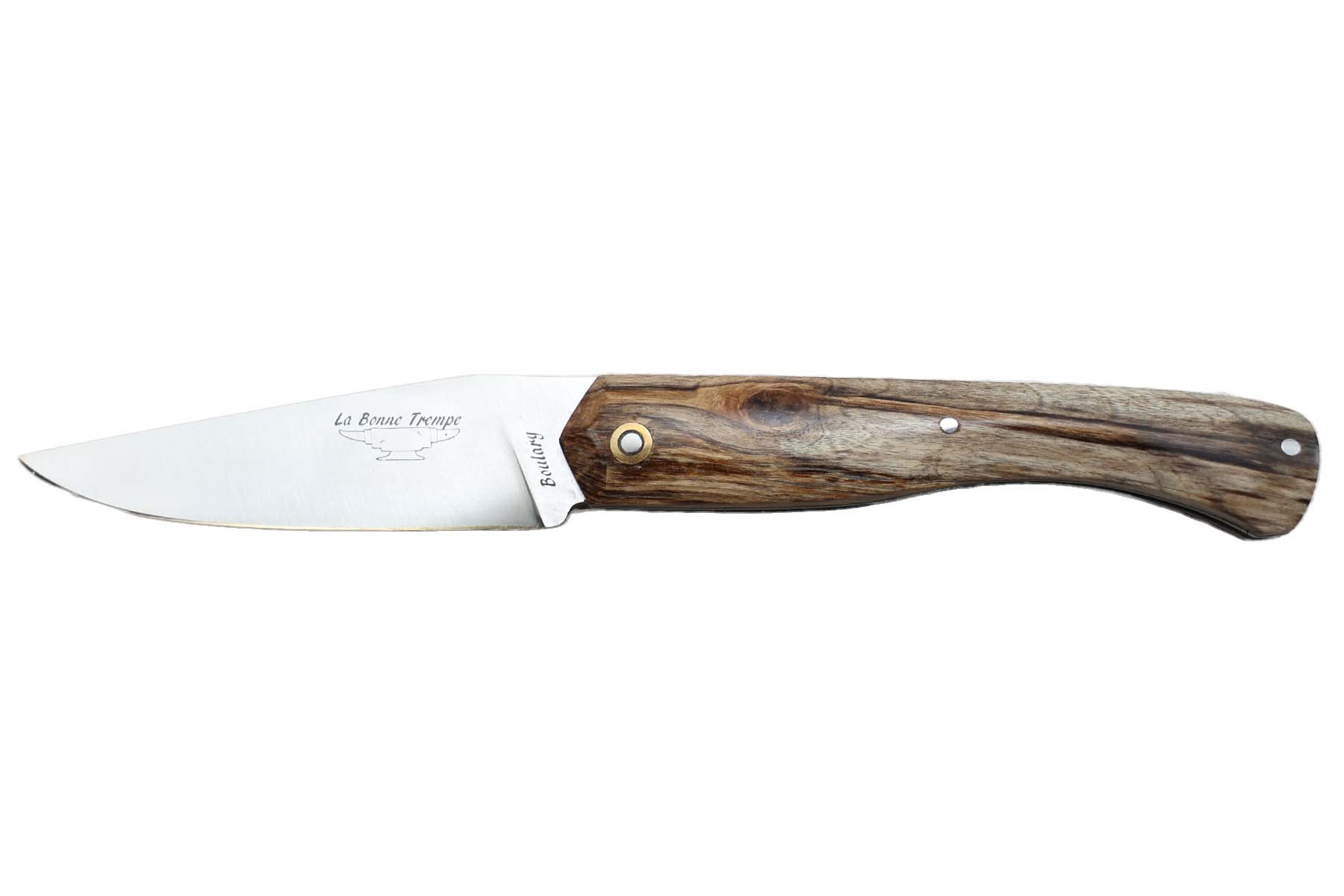 Couteau le "Boulary" par la coutellerie la Bonne Trempe - hêtre échaufféCouteau de poche Le Boulary de l'atelier la Bonne Trempe