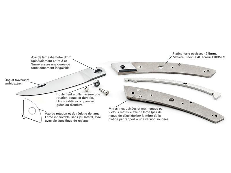 Le mouvement de la bille de haut en bas permet le blocage ou déblocage de la lame.