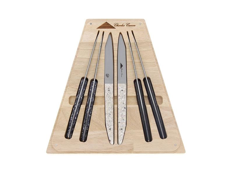 Coffret 6 couteaux de table assortie par Charles Canon "Le Terril" (charbon poli