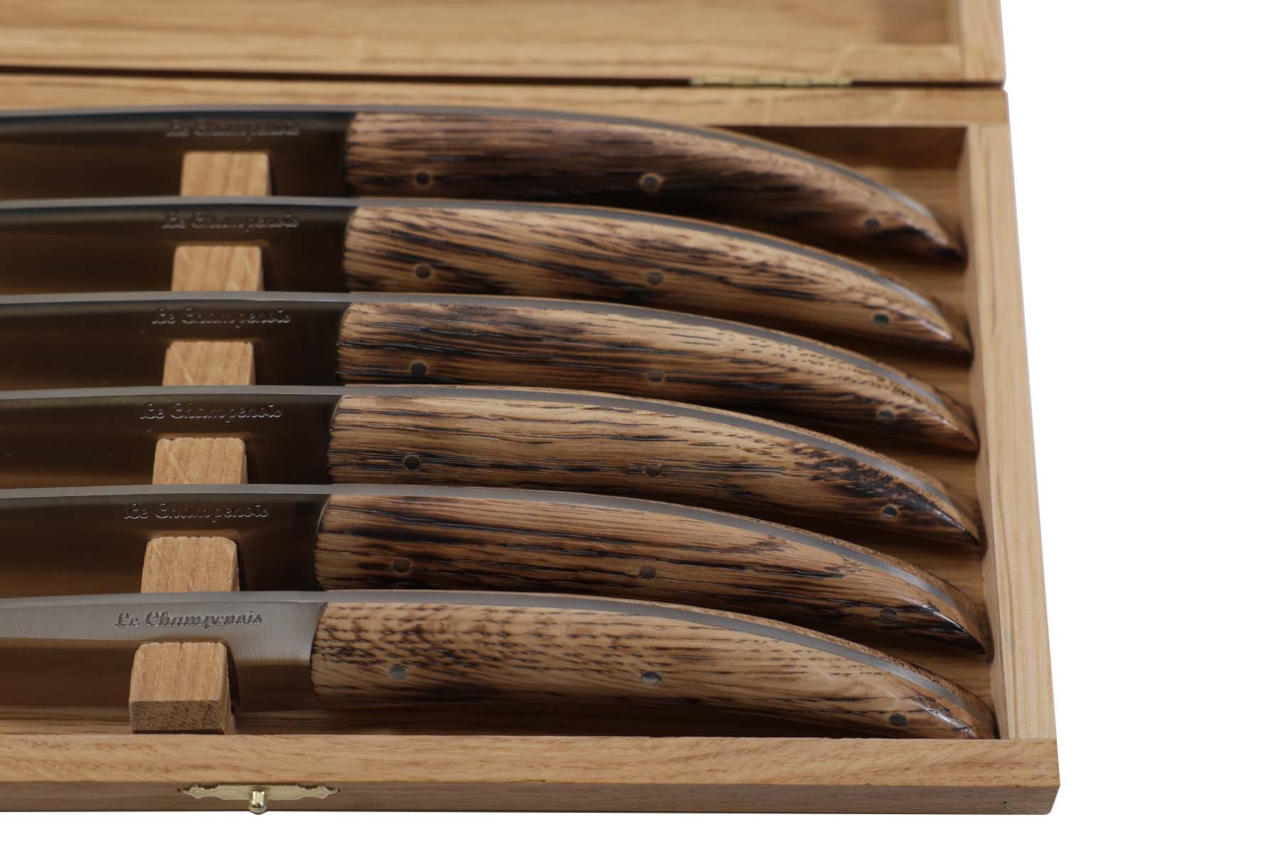 Coffret de 6 couteaux de table "Le Champenois" - Chêne brulé