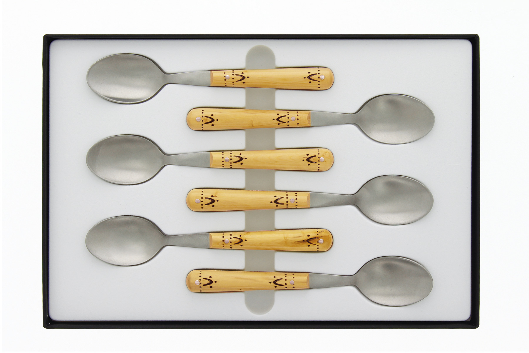 Coffret de 6 cuillères à café Nontron - manche rond en buis pyrogravé