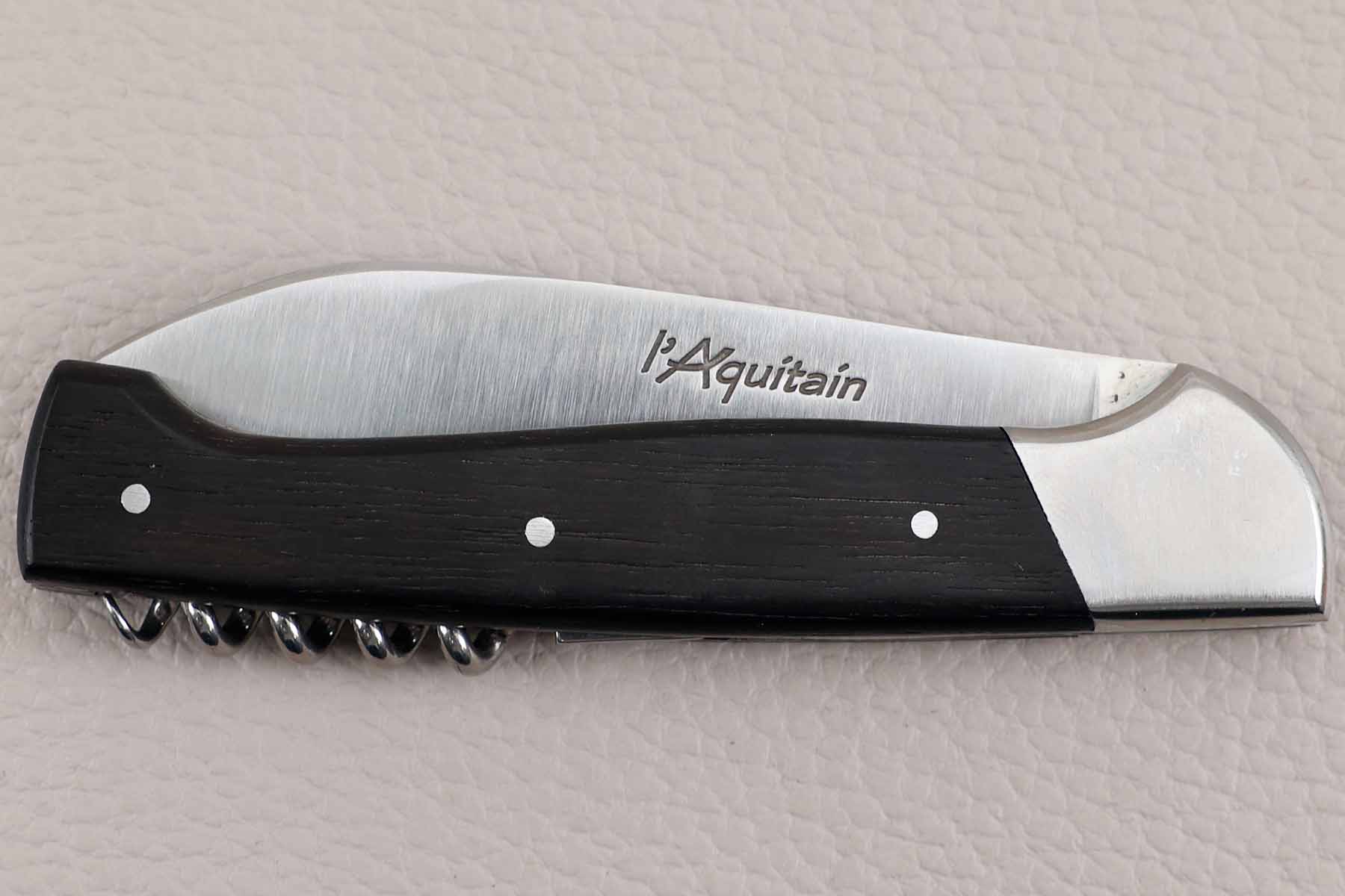 Coutea régional L'Aquitain avec mitre et tire-bouchon - manche en ébène