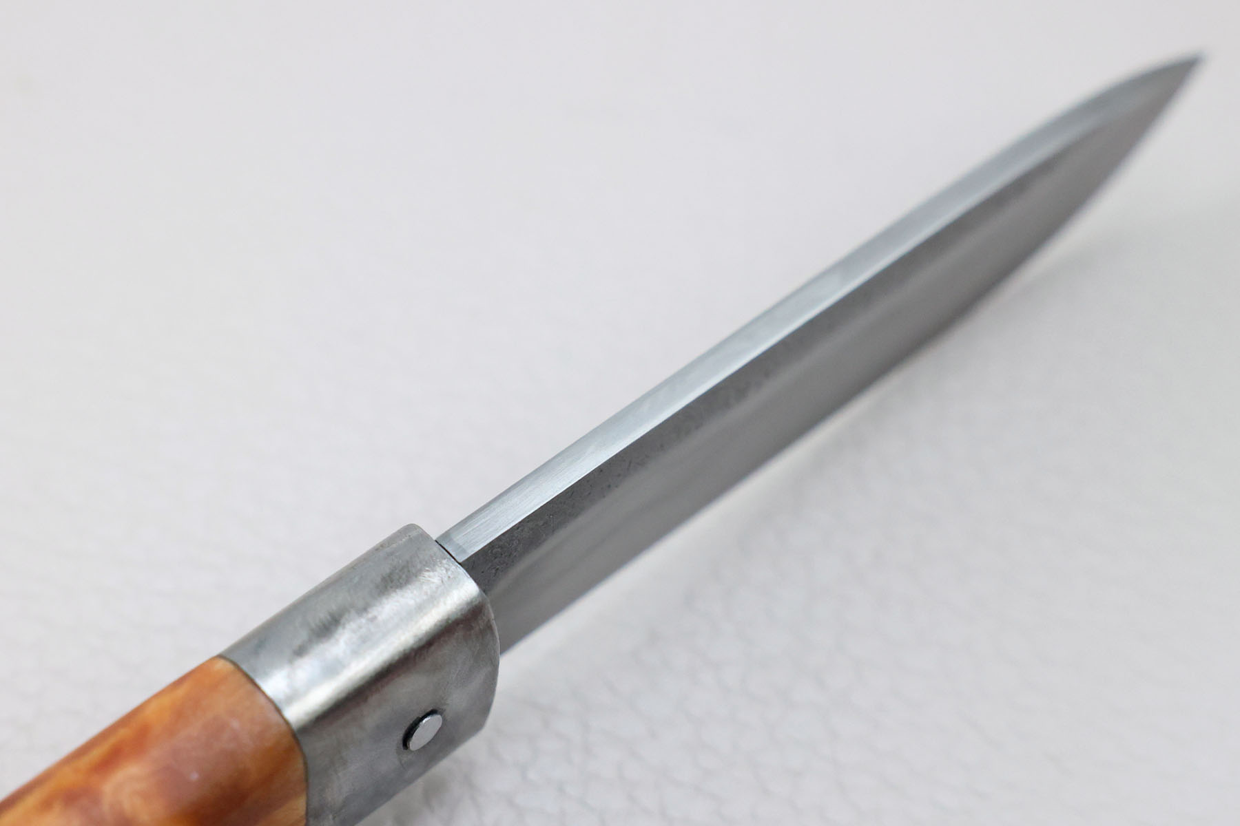 Lame en acier carbone japonais Hitachi San-Mai blue paper steel, finition brossée