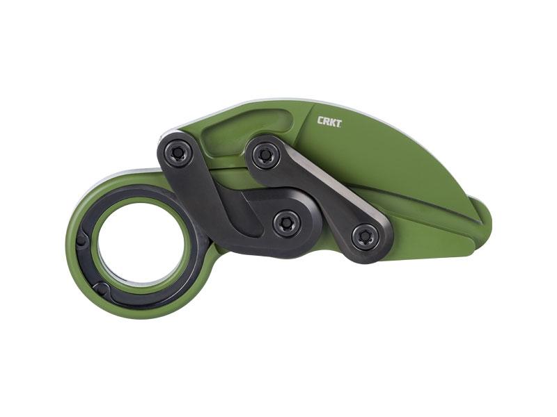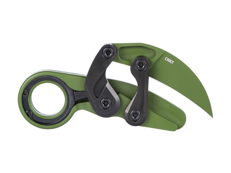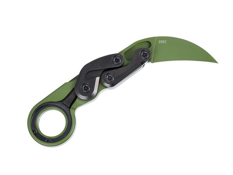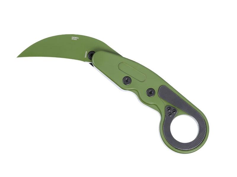 Lame Hawkbill acier D2 revêtement Cerakote® vert à cran avec système d'ouverture Kinematic,