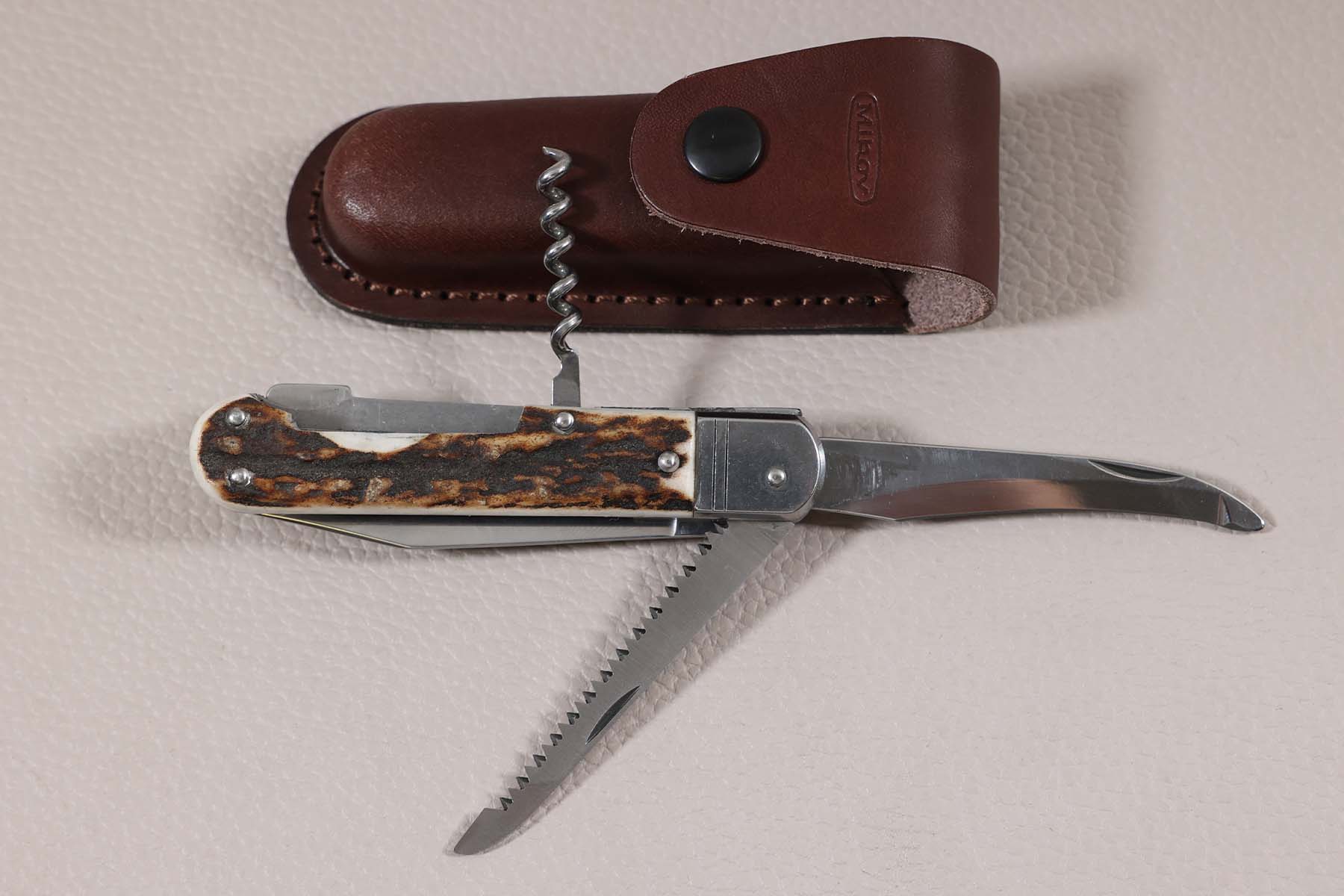 Il est complèté par une lame à éviscérer, une scie à bois, et un tire-bouchon.