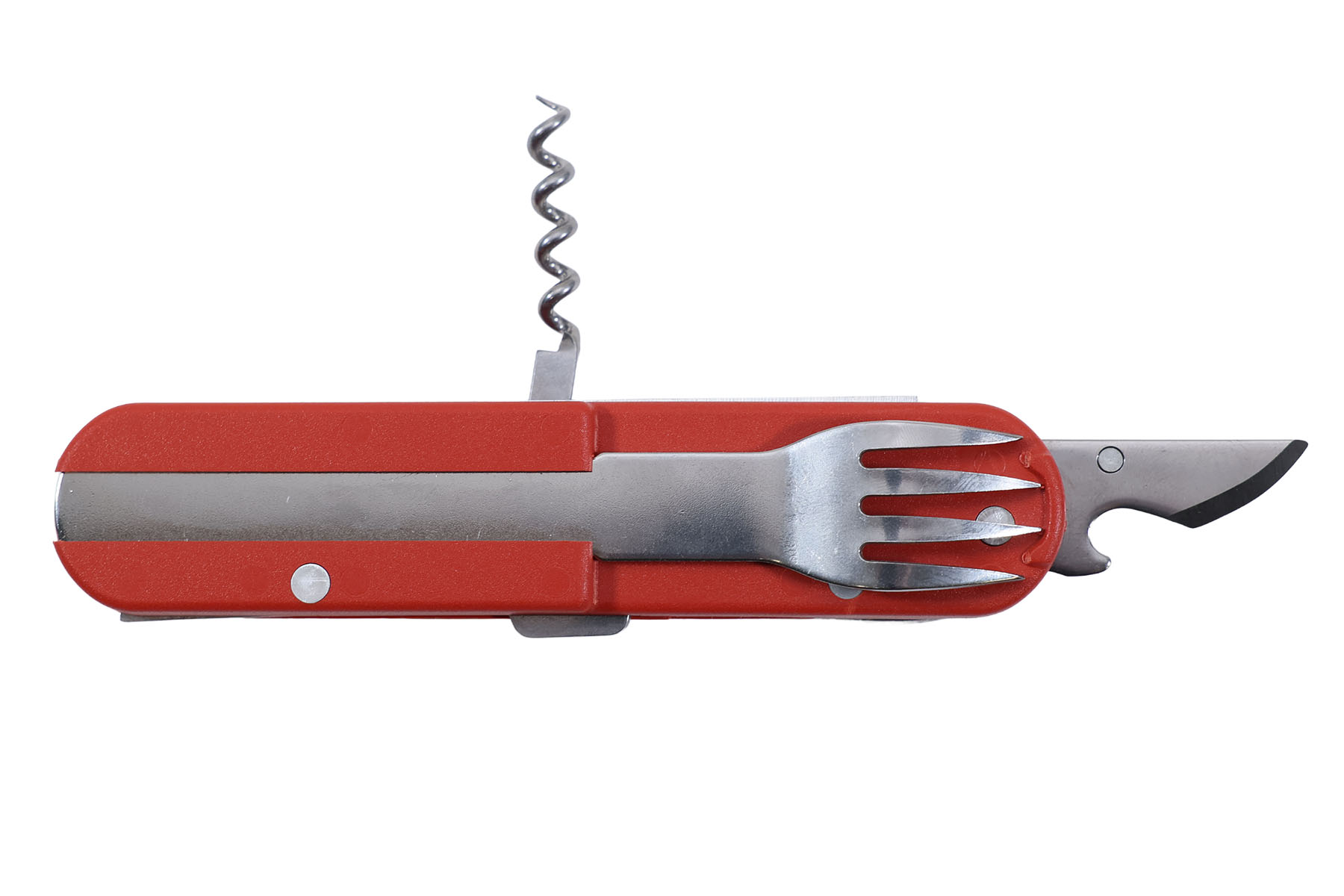 Couteau multifonction de camping rouge TB Outdoor 5 pièces toutes inox :
