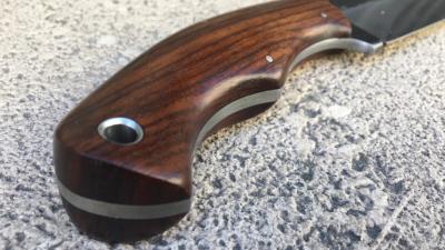 Manche ergonomique plate semelle en Palo Santo avec rivets et ergot en inox