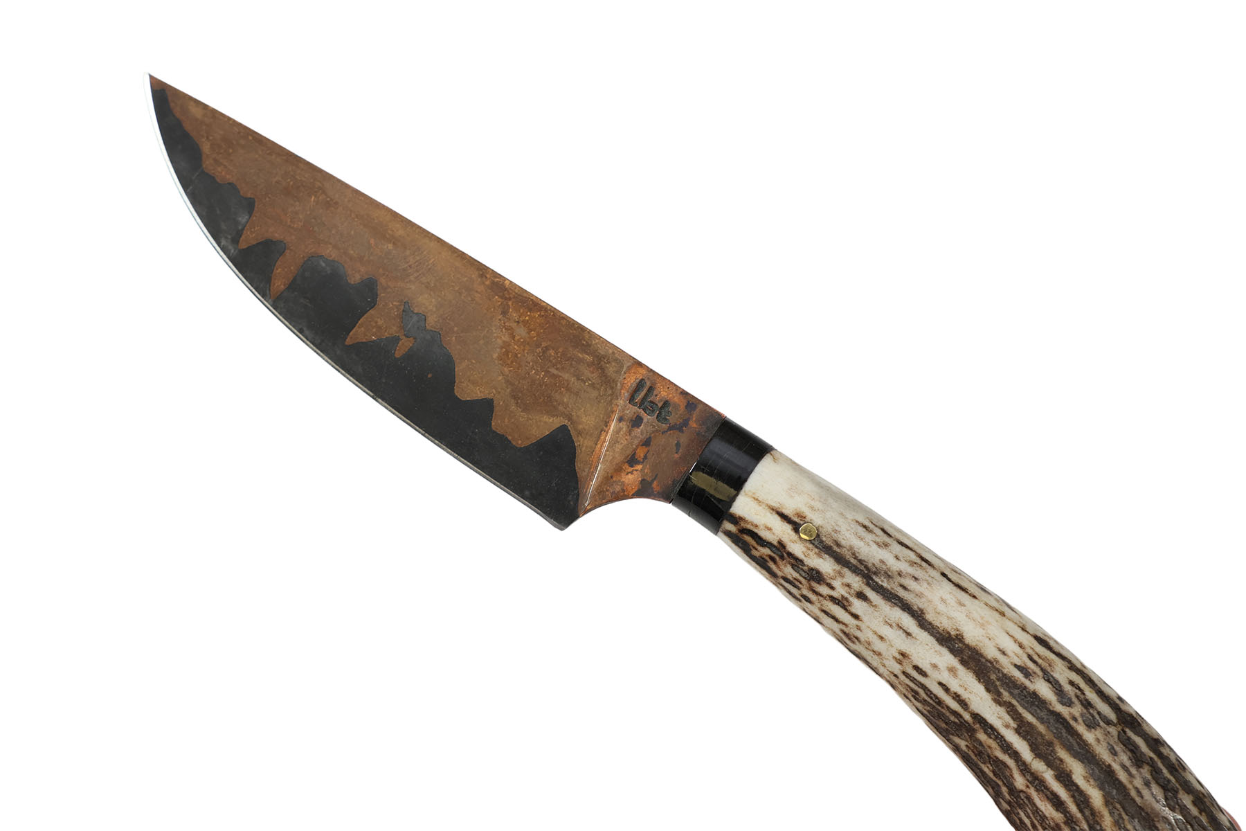 Couteau fixe Forgé par La Bonne Trempe - cuivre - bois de cerf
