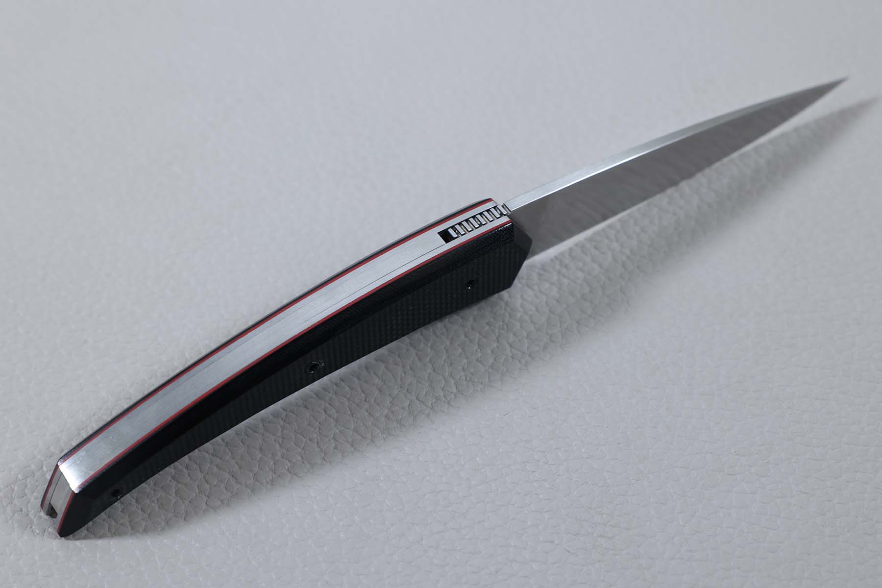 Plaquettes en G10 noir, intercalaire G10 rouge.