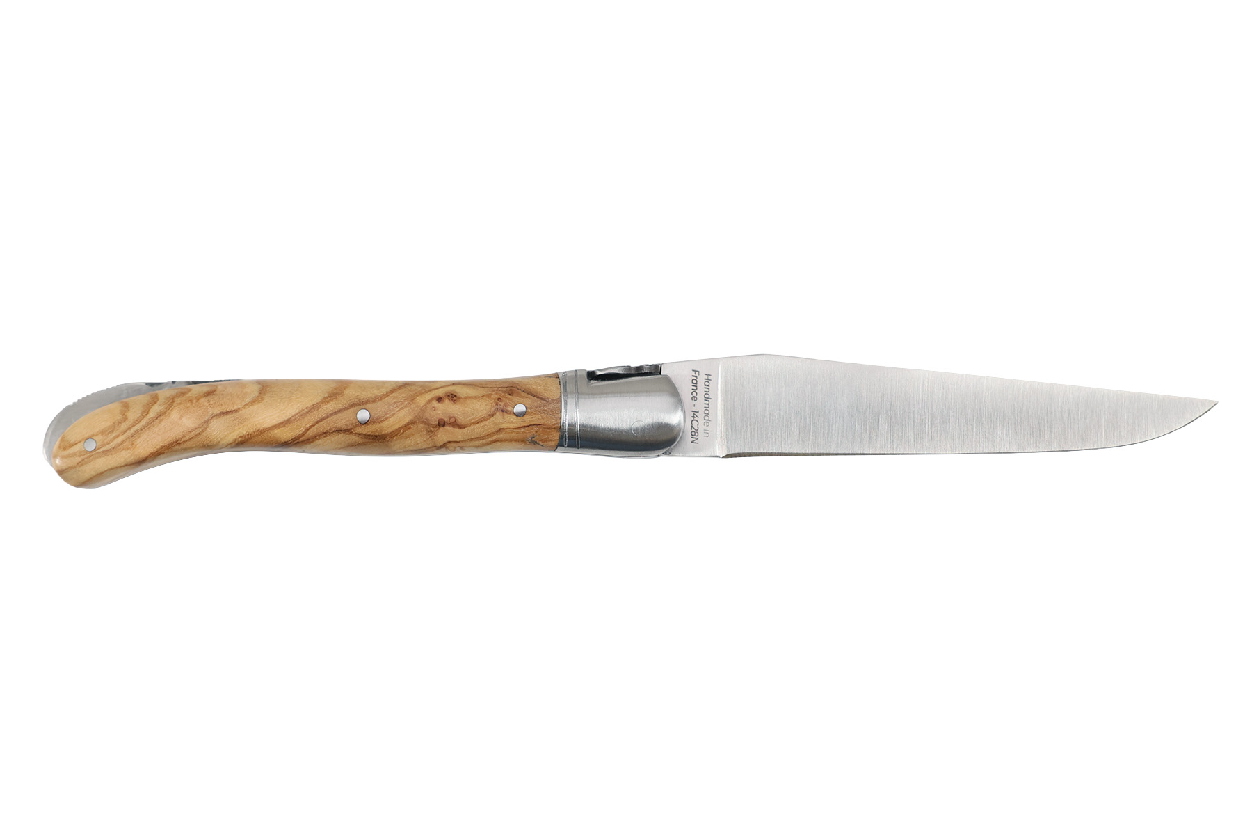 Lame mate à cran (en bout de manche) acier 14C28N,