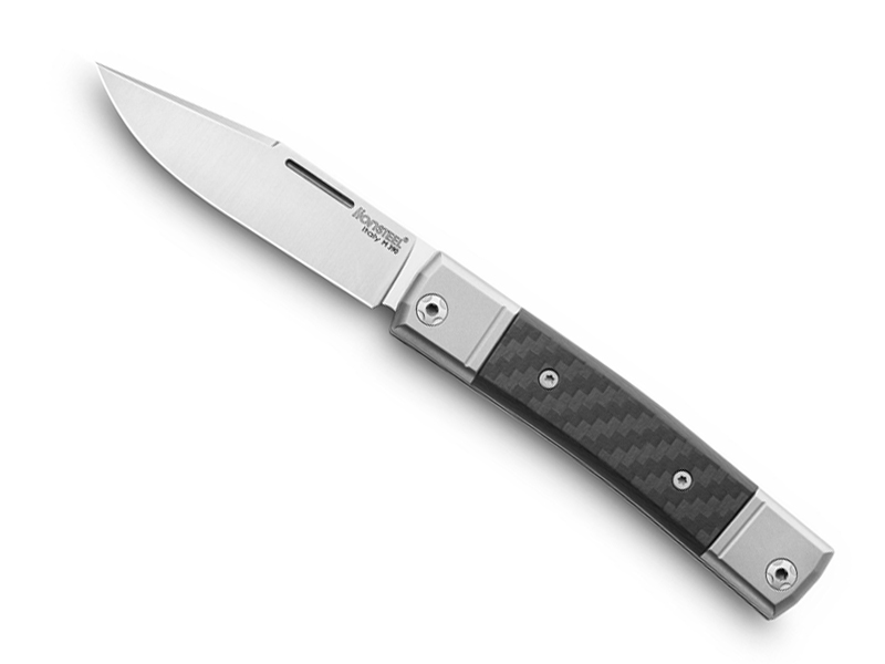 Couteau Lionsteel Bestman - manche 10 cm plaquettes fibre de carbone et mitres titanium 6AL4V
