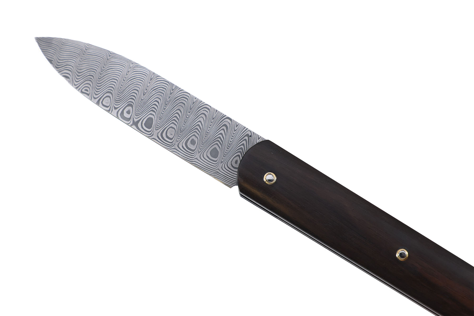 Couteau modèle le Parisii manche ébène de macassar, lame damas