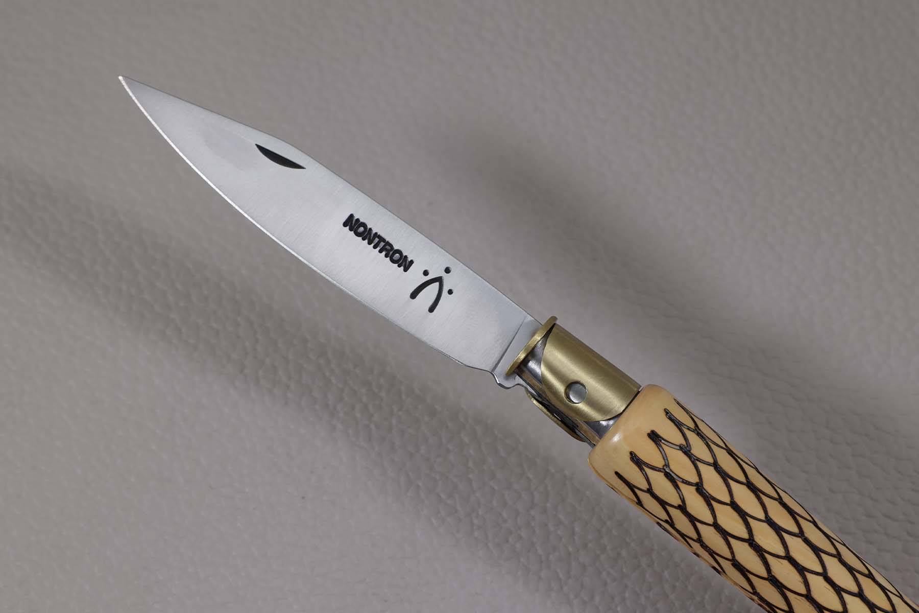Couteau de poche Nontron N°25 modèle grand-duc avec plumes en buis.