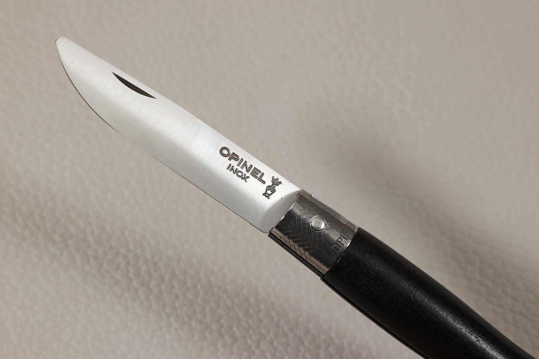 Son manche en bois d'ébène, monté d'une lame en acier inoxydable de 7 cm au bout arrondi.
