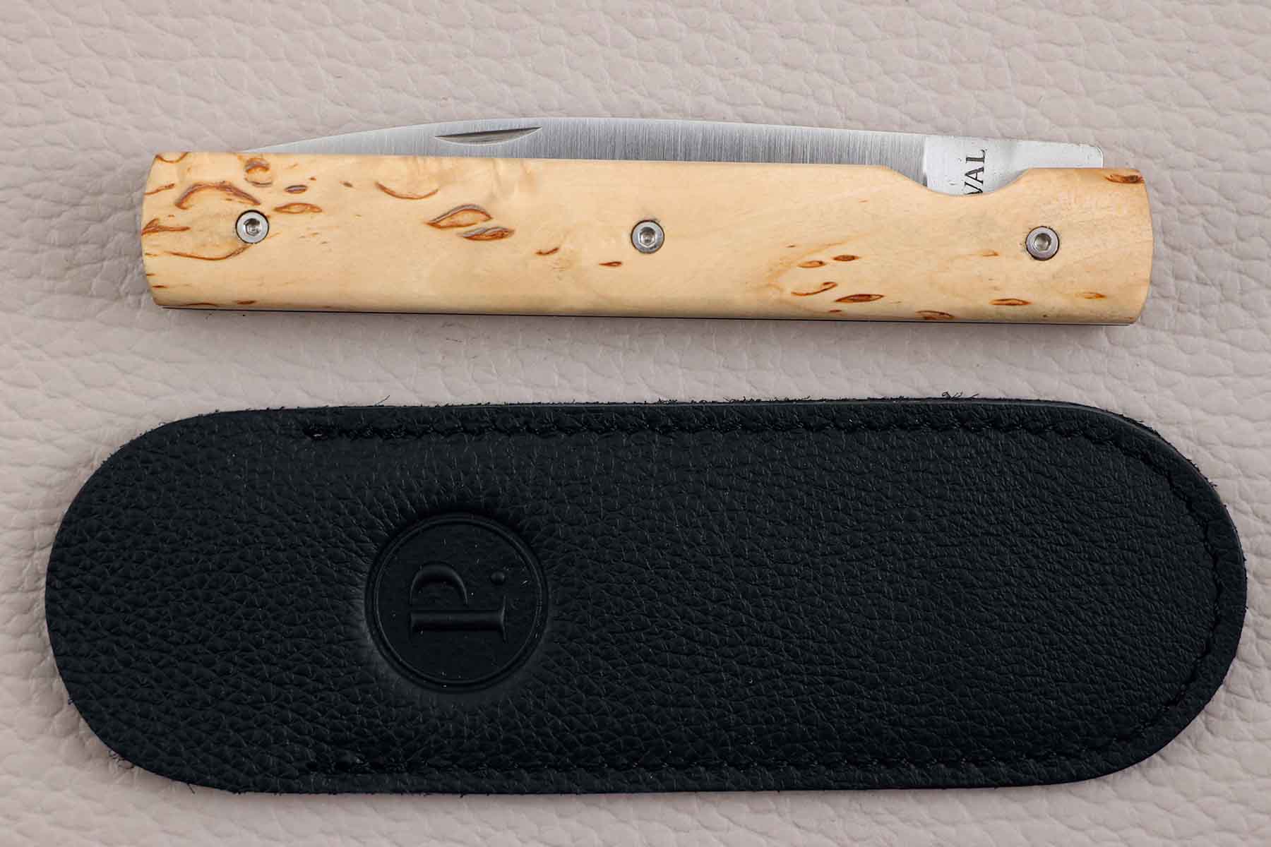 Chaque couteau Le Français est livré avec un étui cuir de vachette pleine fleur.