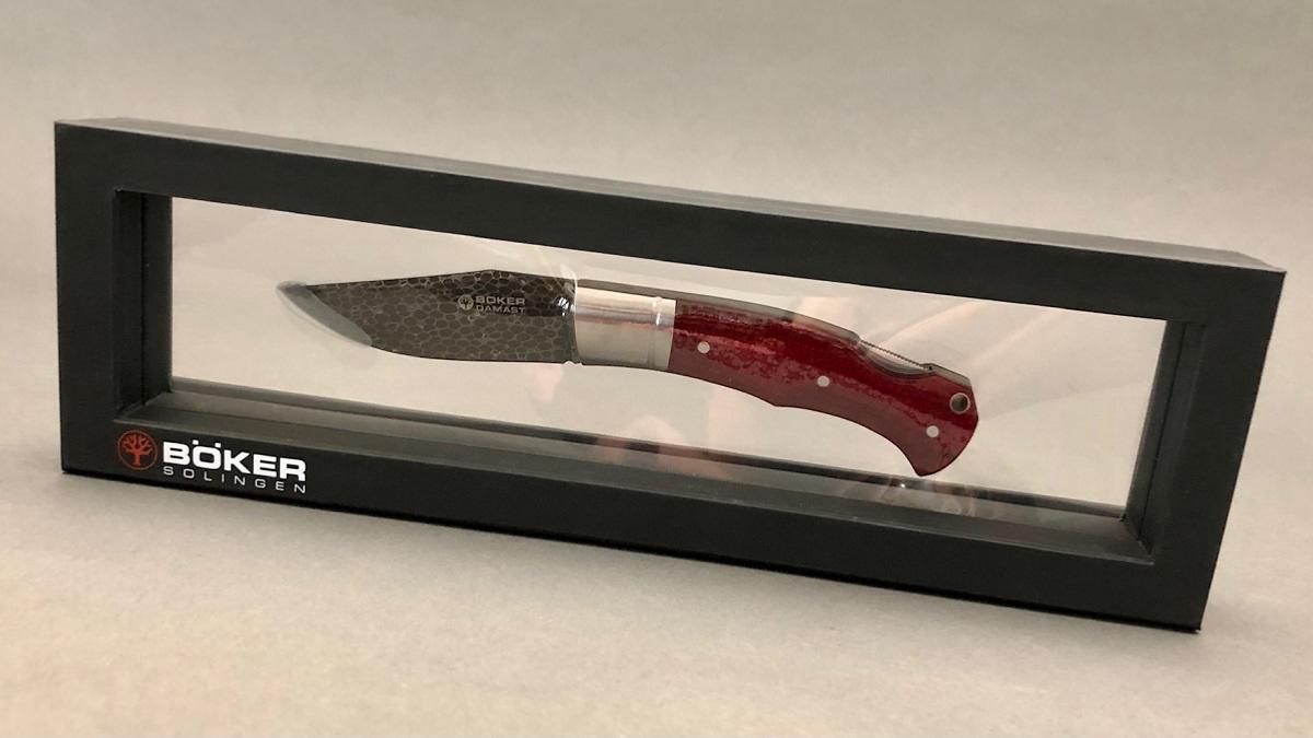 • Couteau Böker "BOXER" Damas - manche 10 cm micarta bordeaux