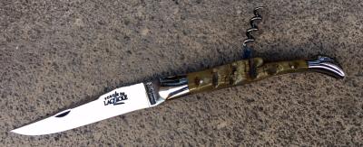 Couteau Forge de Laguiole 2 pièces - Manche en corne de bélier de 12 cm avec tire bouchon