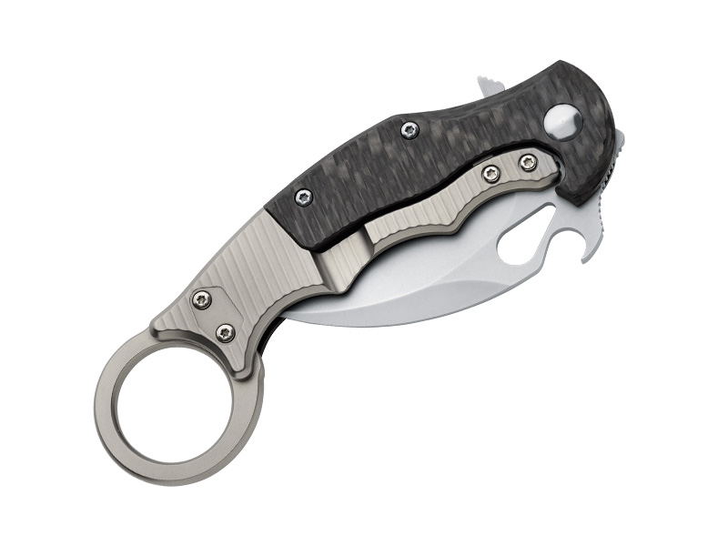 Lorsque le couteau Karambit est maintenu dans une poche par le clip, on peut, en tirant sur l'anneau, extraire le couteau de la poche et ouvrir en même temps la lame (grâce au crochet situé sur le dos de cette dernière).