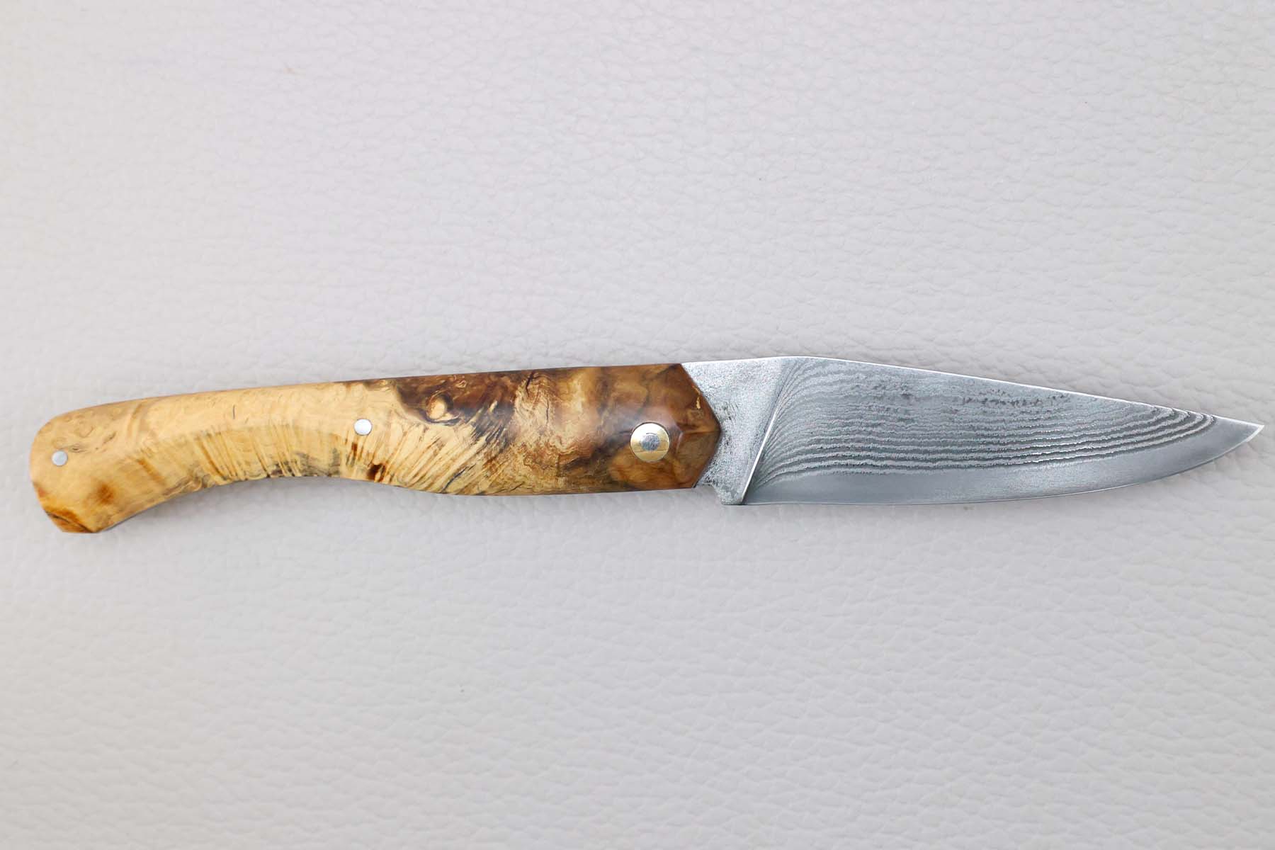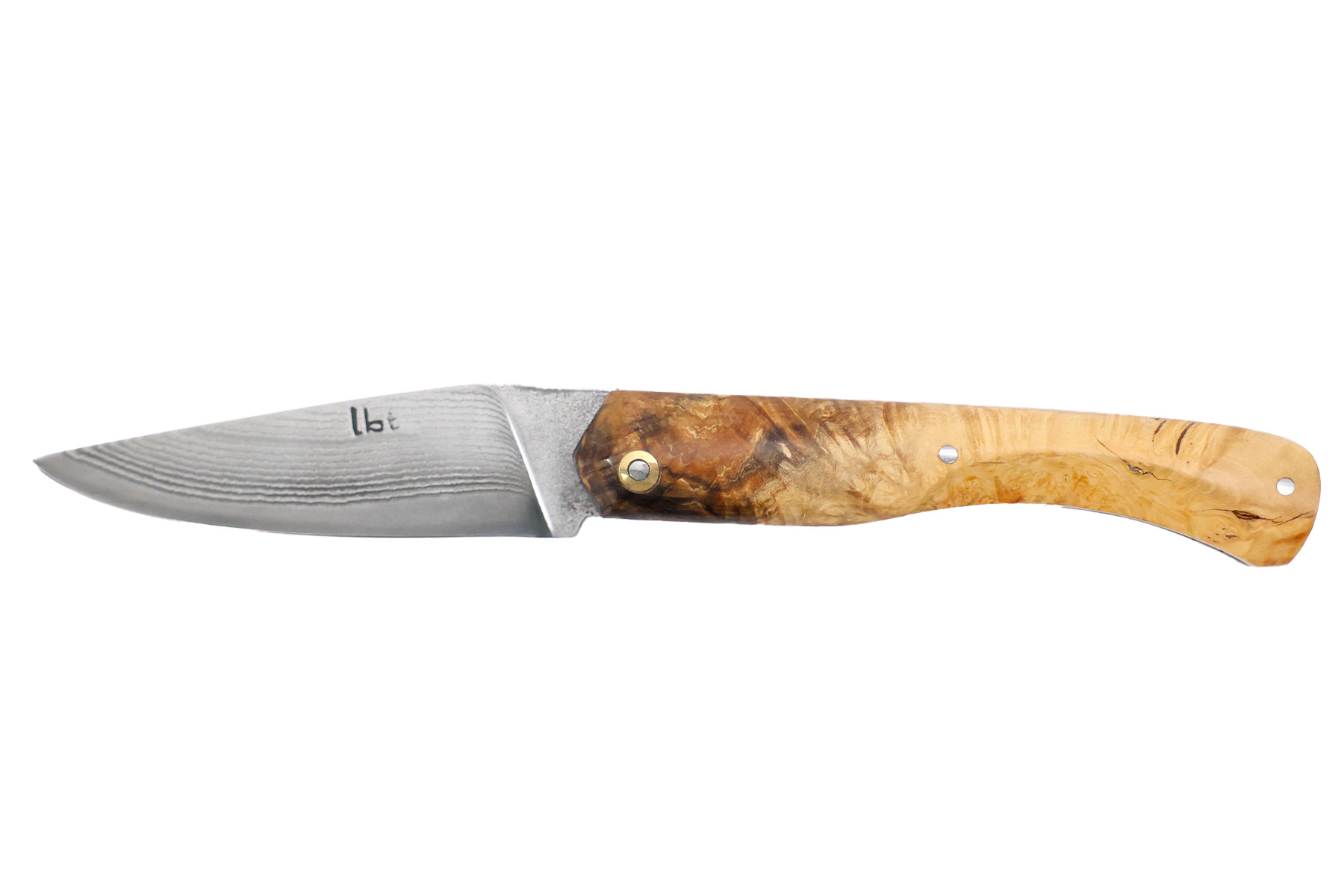 Couteau le "Boulary" par la coutellerie la Bonne Trempe - Ronce de buis stabilisée - Suminagashi