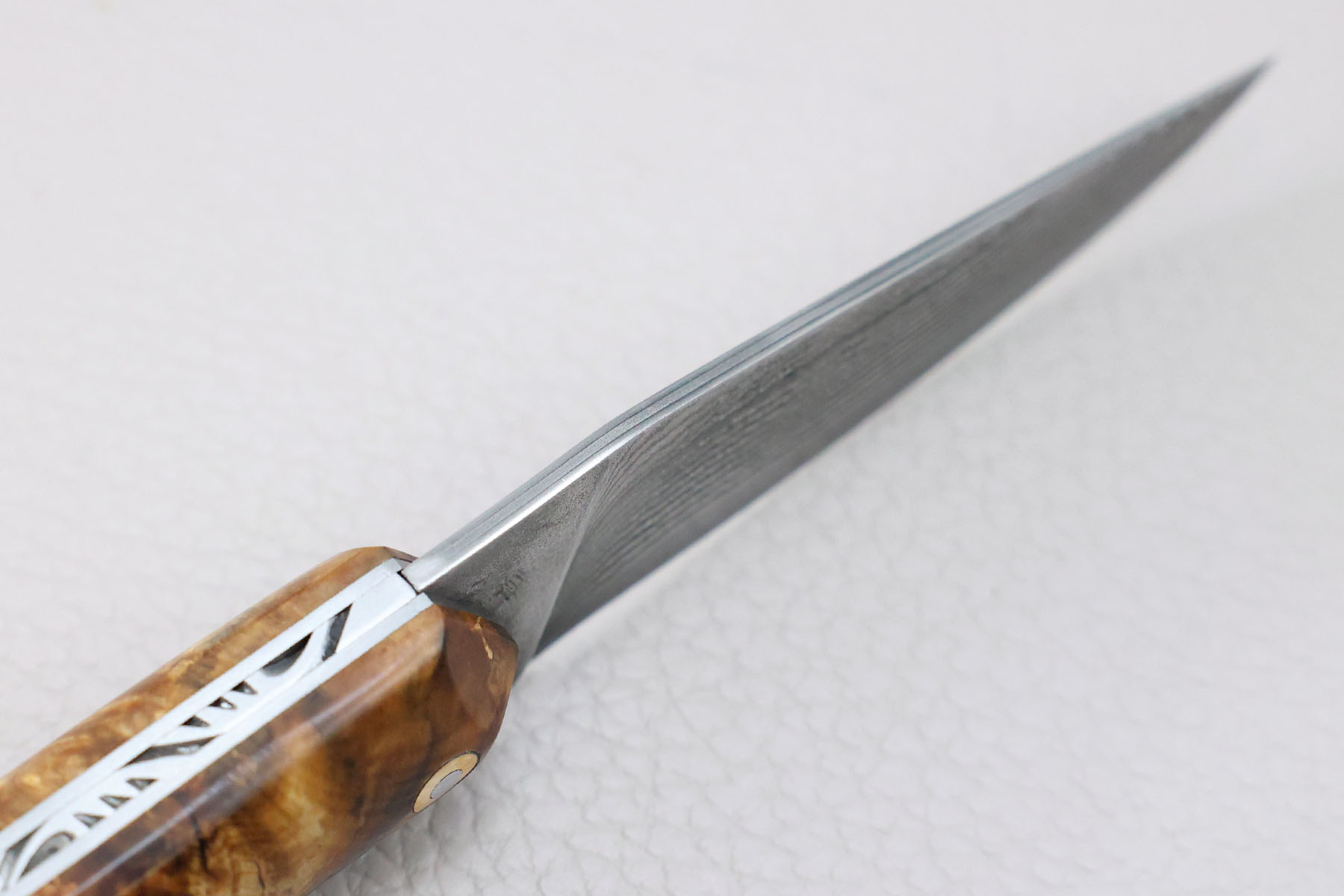 Couteau le "Boulary" par la coutellerie la Bonne Trempe -  Ronce de buis stabilisée - Suminagashi