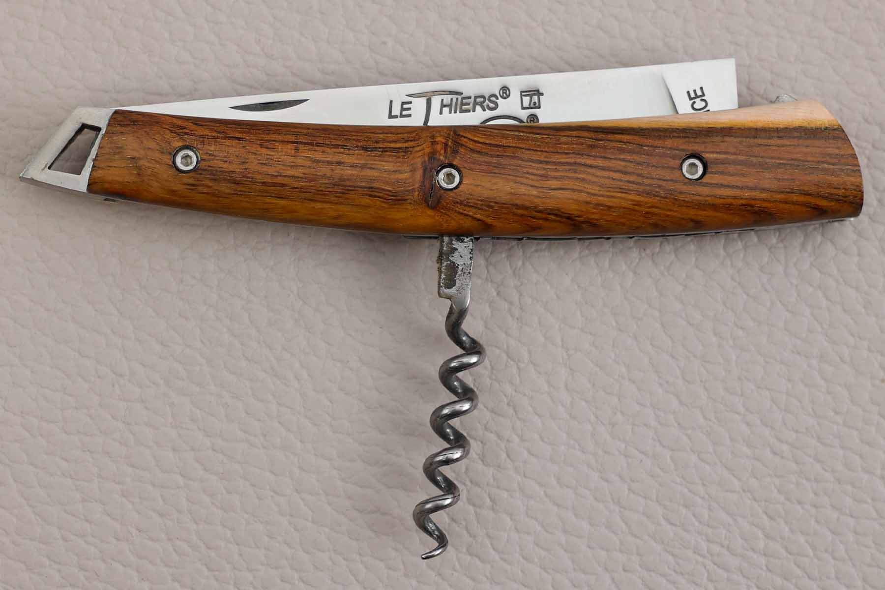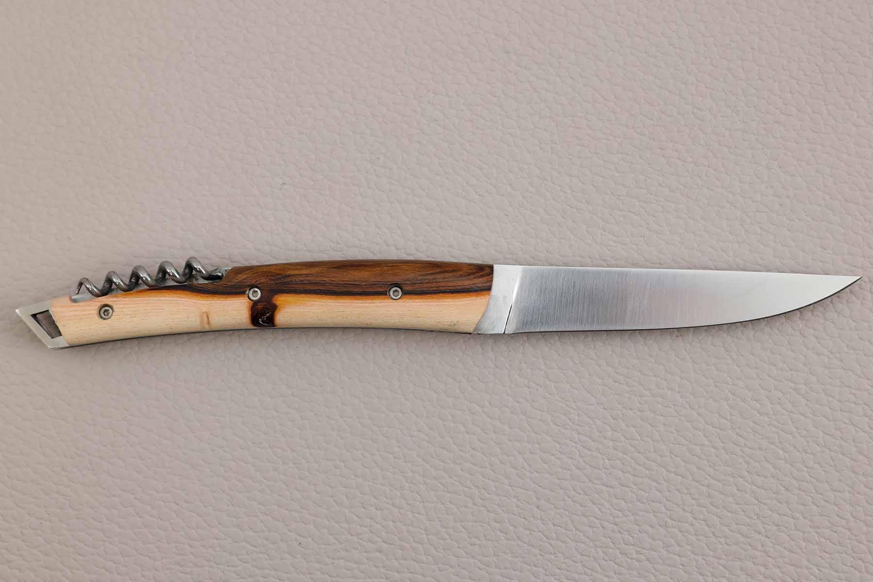 Plaquettes en pistachier avec tire-bouchon, (fixées sur 3 points par des vis 6 pans)