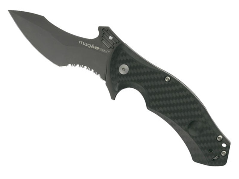 Couteau Viper Maga lame semi denté noir - manche de 12 cm en fibre de carbone