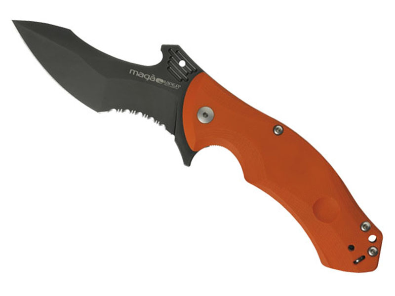 Couteau Maga VIiper semi dentée noir inox - manche 12 cm G10 orange