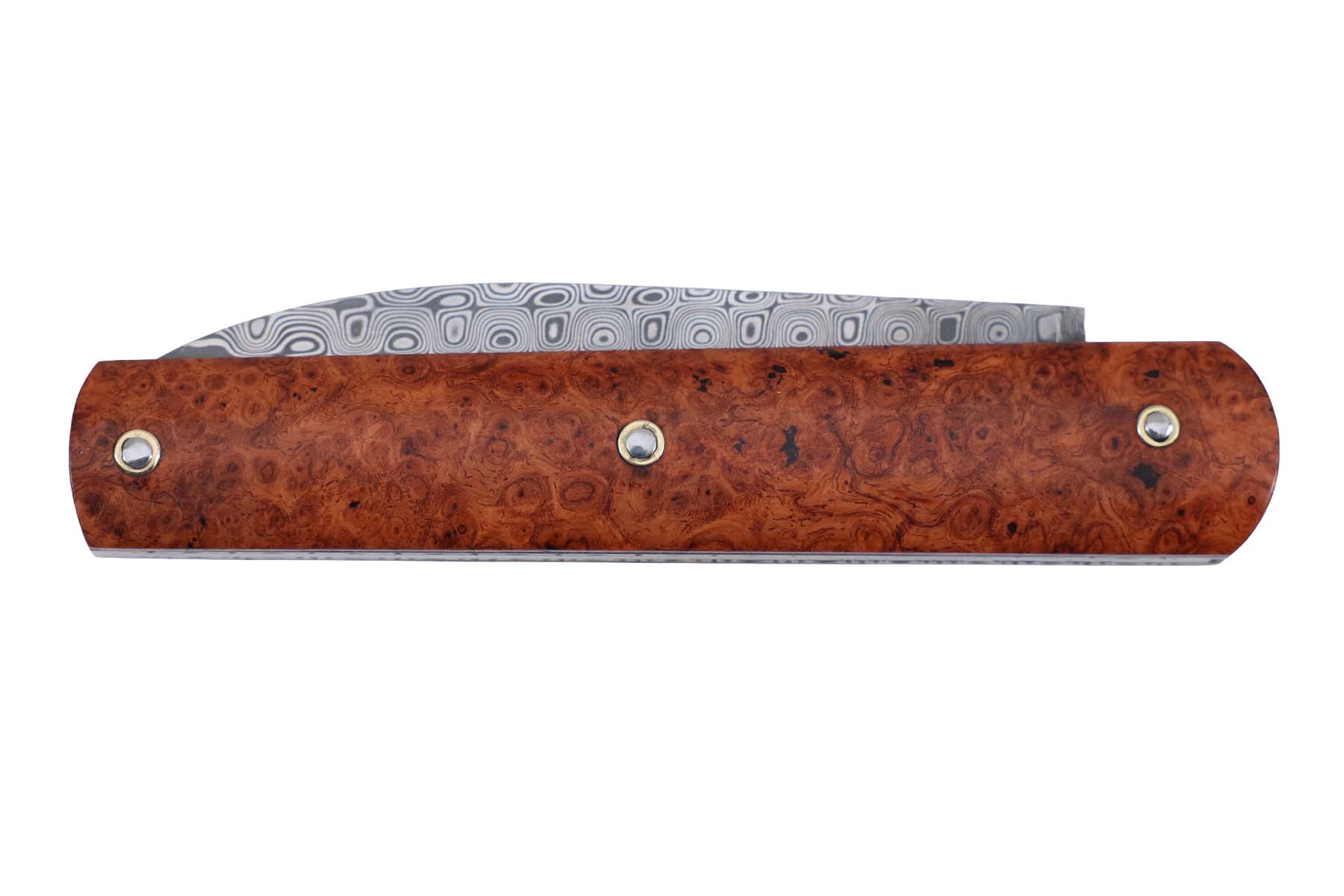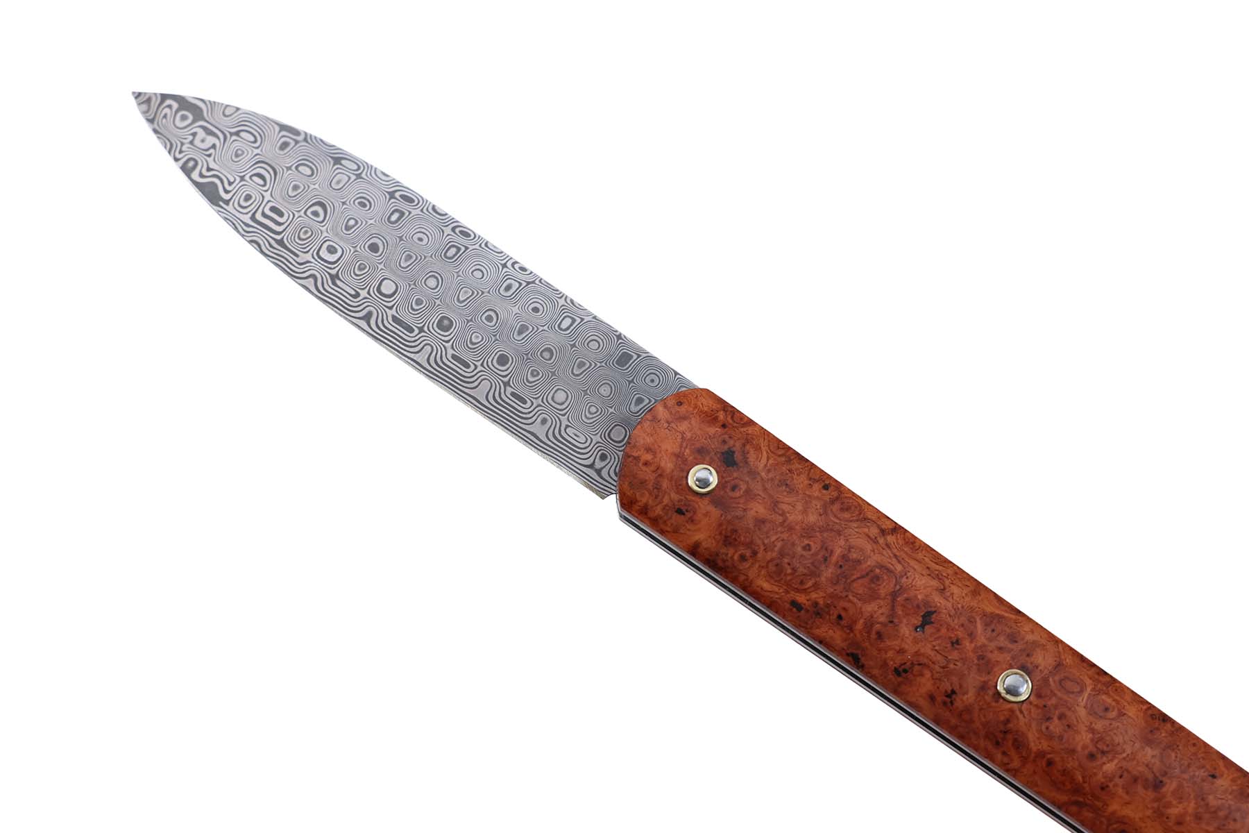 Couteau modèle le Parisii manche loupe amboine, lame damas