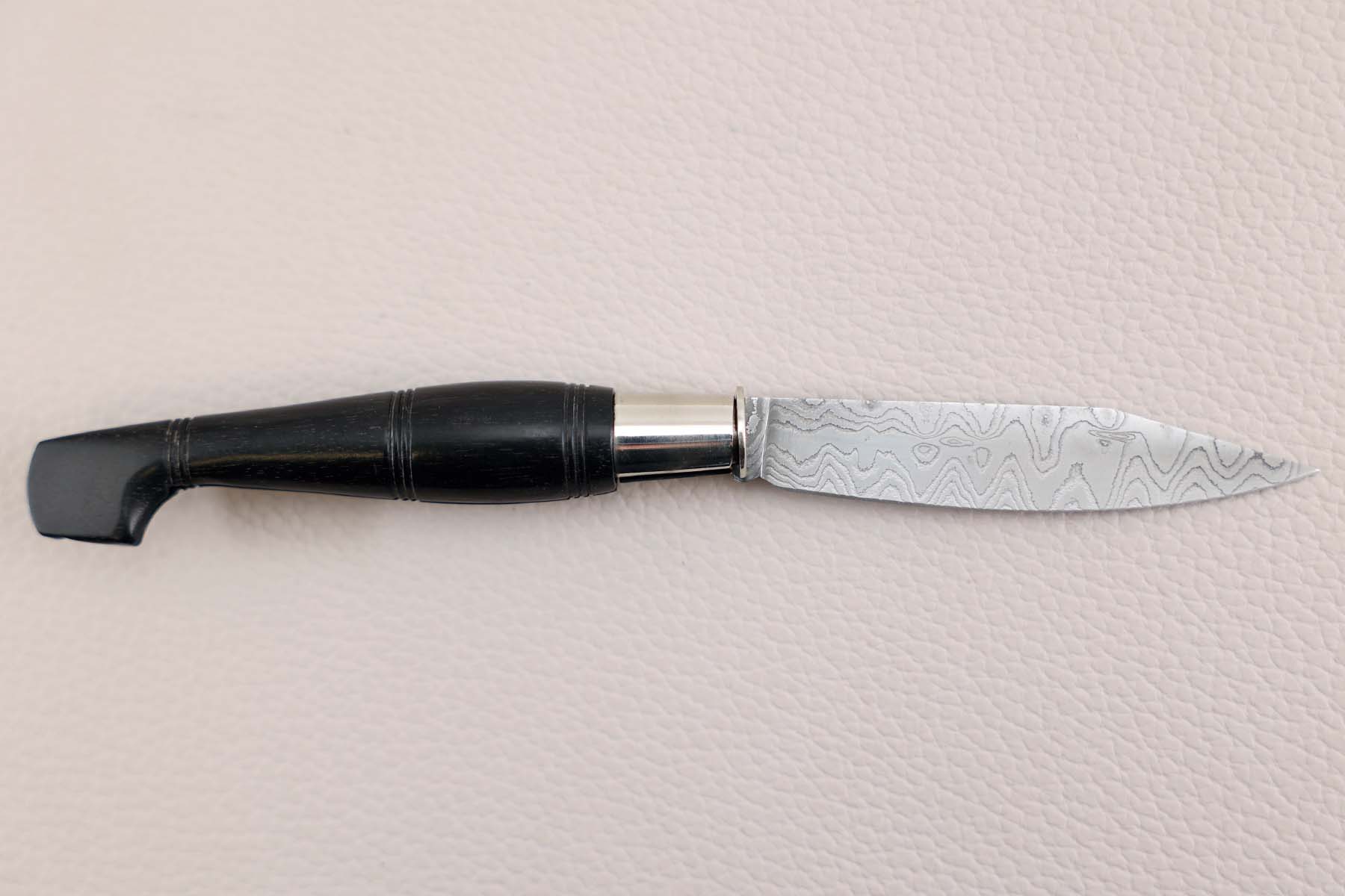 Couteau Nontron lame damas manche "Sabot" en ébène