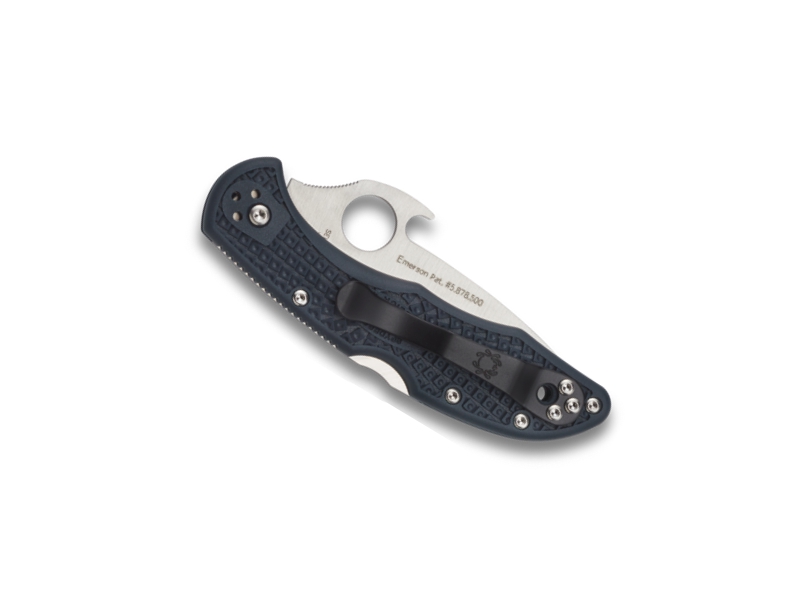 Grâce au crochet protubérant, on peut ouvrir le couteau en même temps qu'on le sort de sa poche.