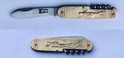 Couteau coursolle motif musicien et femme - 2 pièces laitonCouteau régional Le Coursolle, 2 pièces,