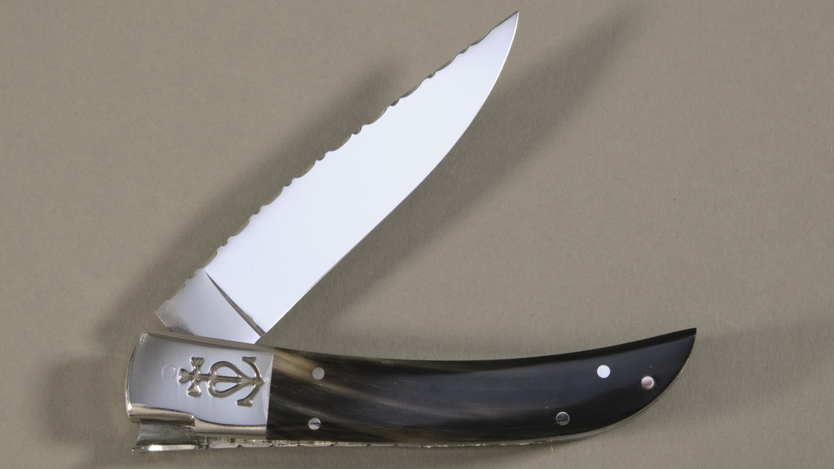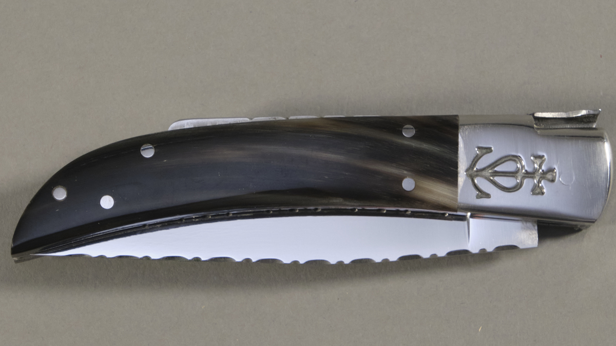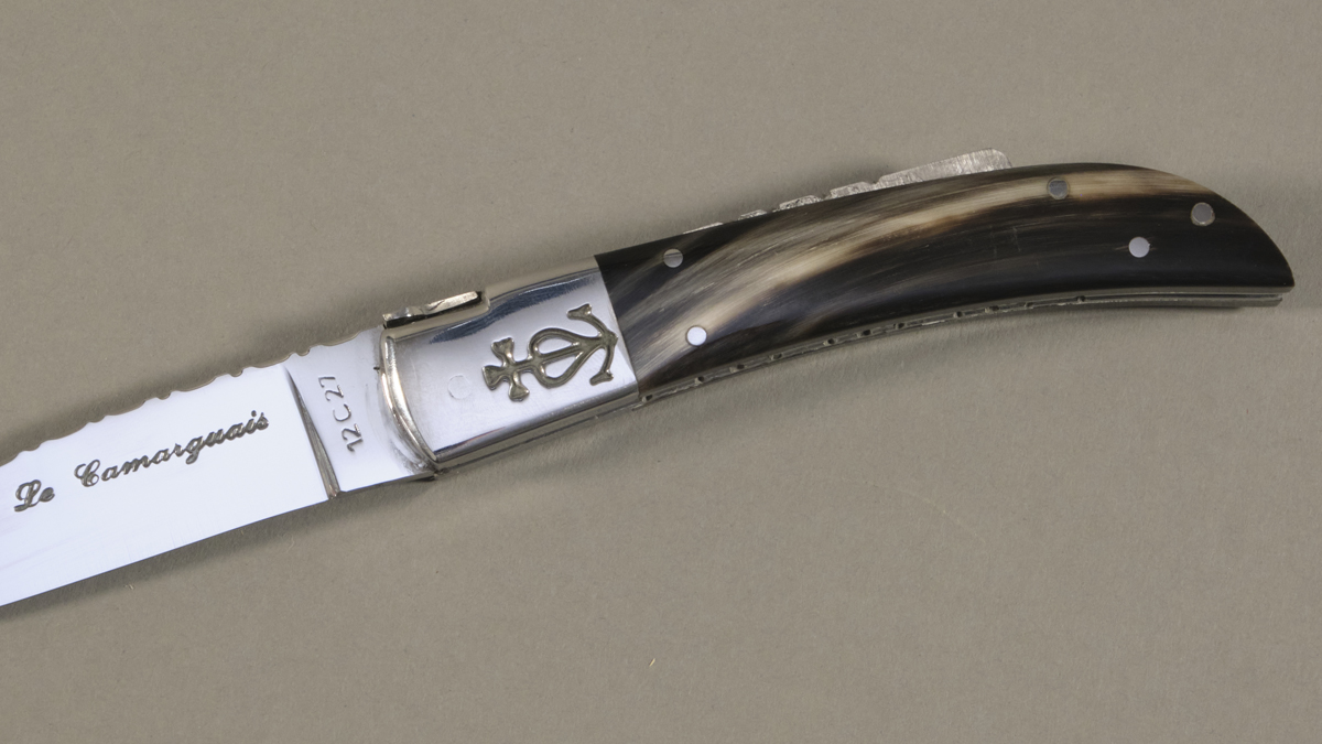 Couteau régional Le Camarguais n°12 trident forgé ciselé - 10,5 cm Pointe de corne noire