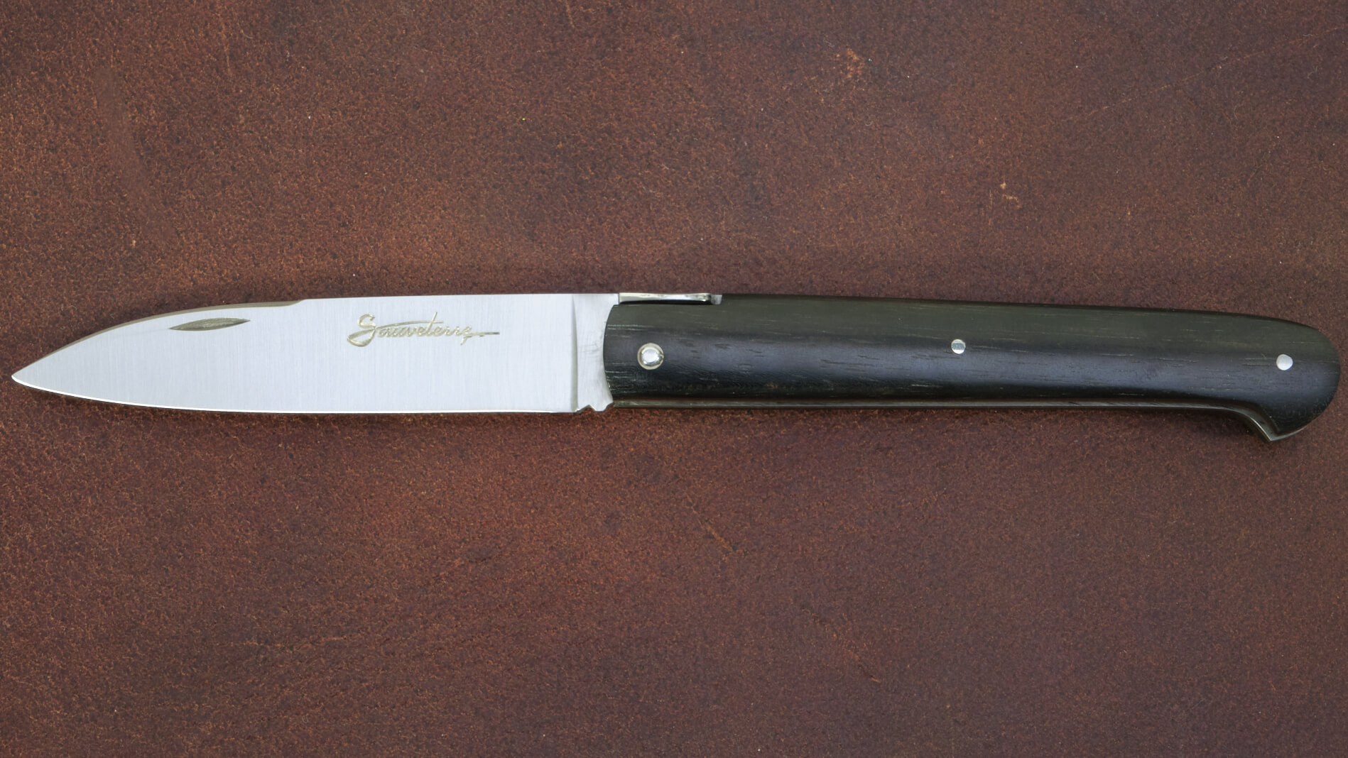 Couteau Sauveterre plein manche 9 cm - ÉbèneCouteau pliant régional "Sauveterre" plein manche en ébène.