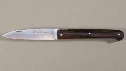 Couteau muni d'une lame de 9 cm en acier inoxydable 12C27 et d'un manche de 11 cm doté de plaquettes en ébène.