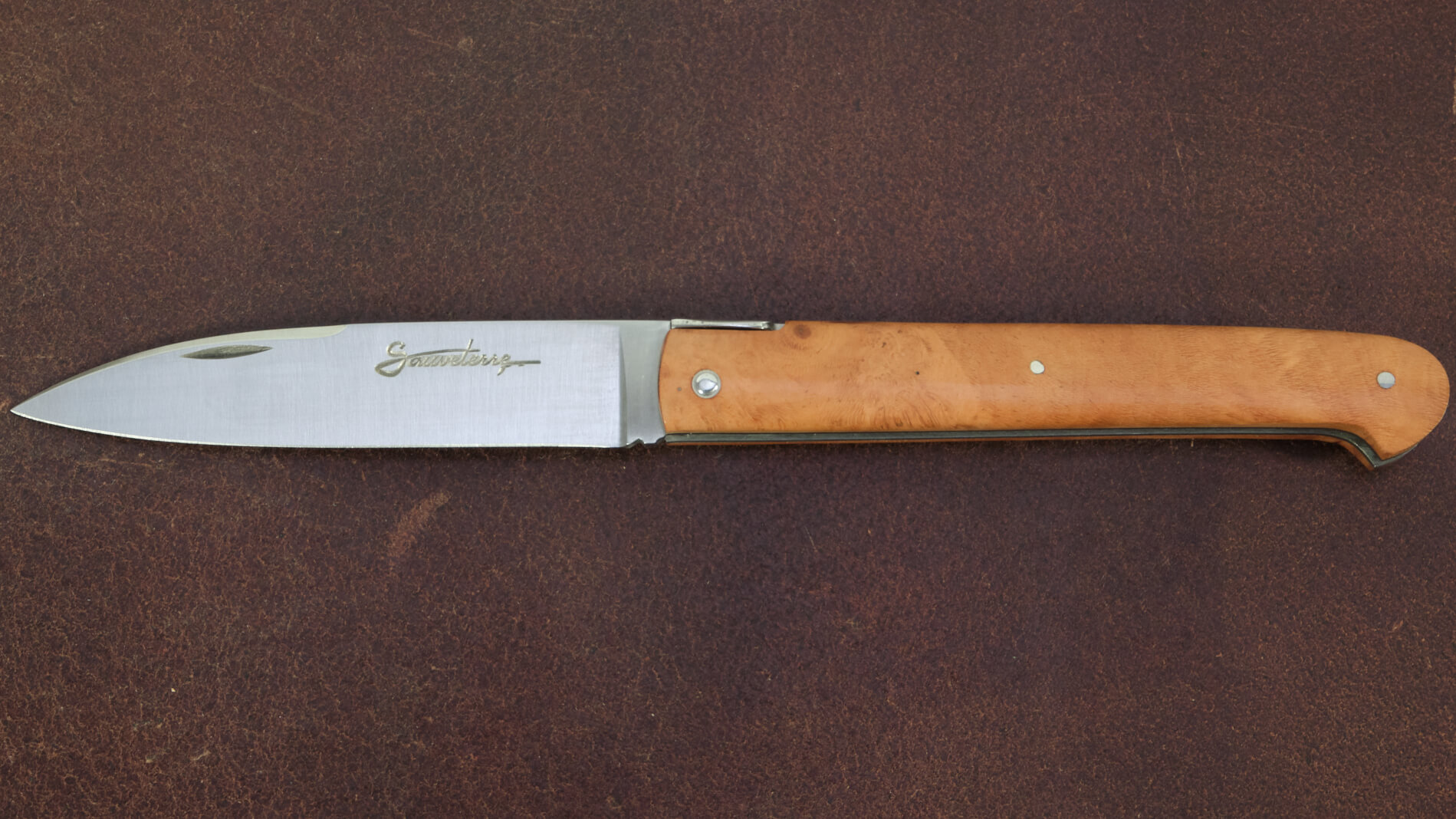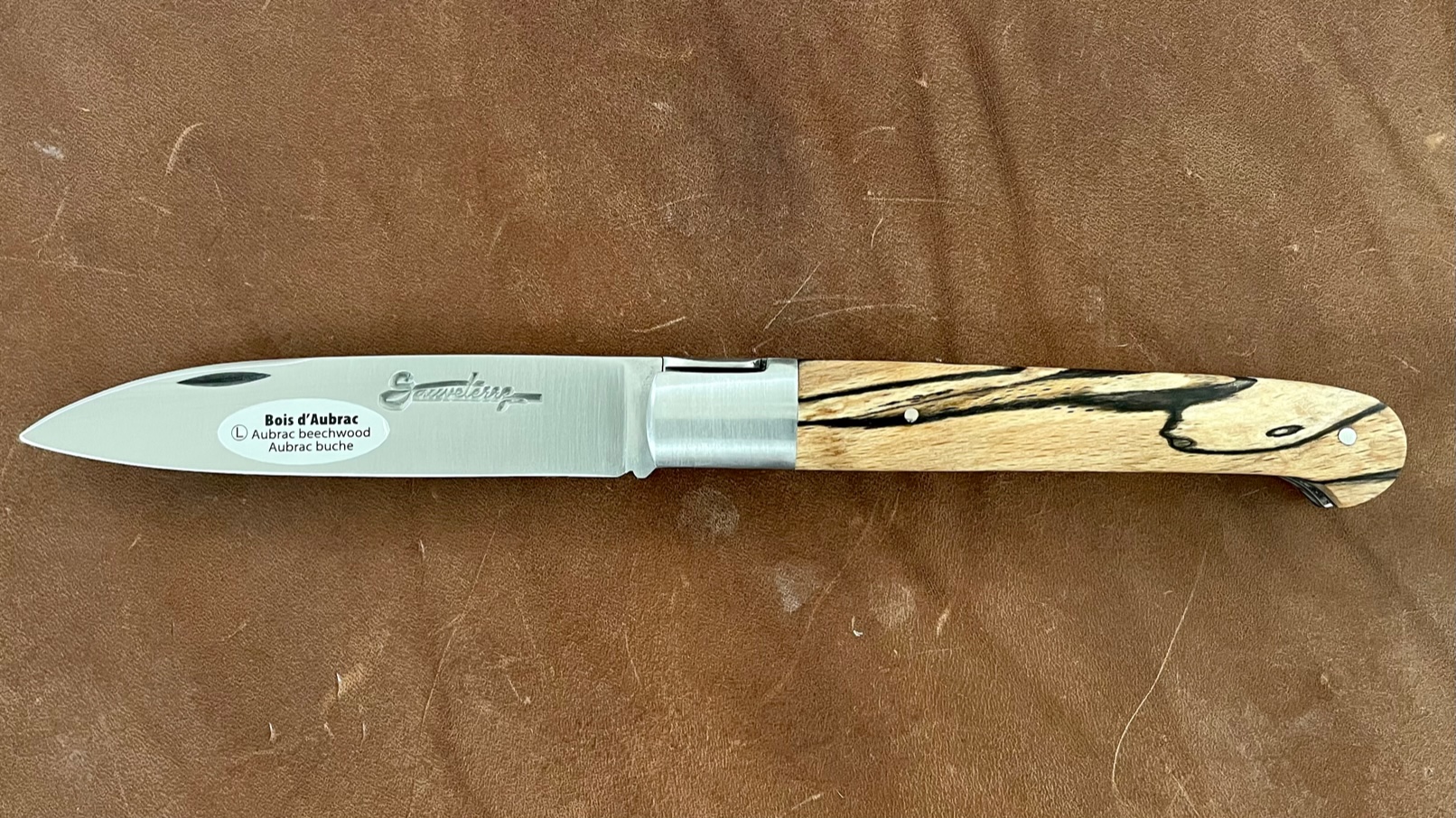 Couteau Sauveterre plein manche 9cm - BruyèreCouteau pliant régional "Sauveterre" plein manche en bruyère.