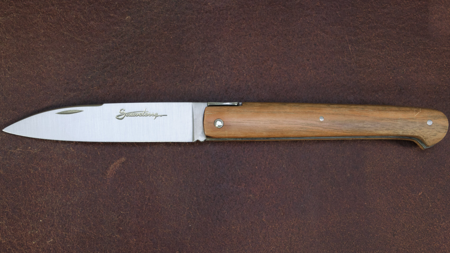 Couteau Sauveterre plein manche 9 cm - NoyerCouteau pliant régional "Sauveterre" plein manche en noyer.