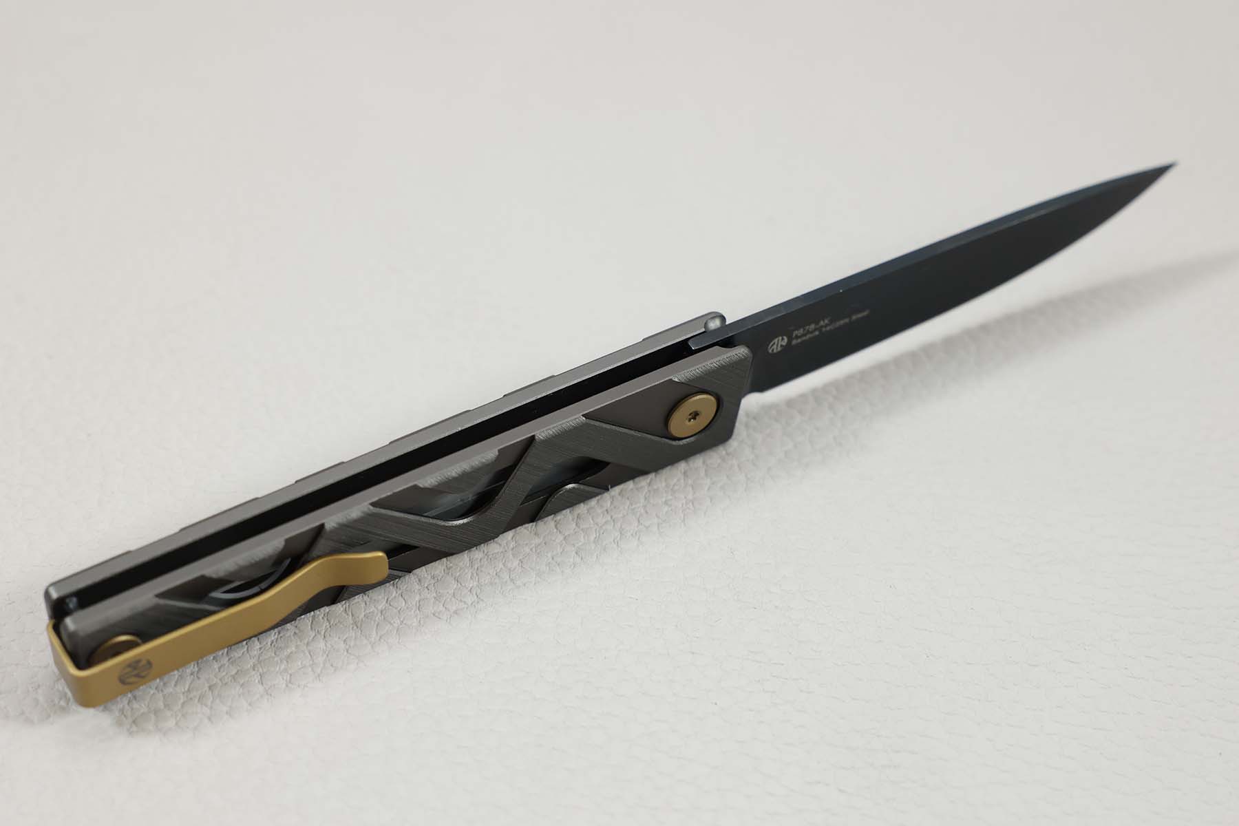 Système d'ouverture flipper et blocage de la lame par liner-lock.