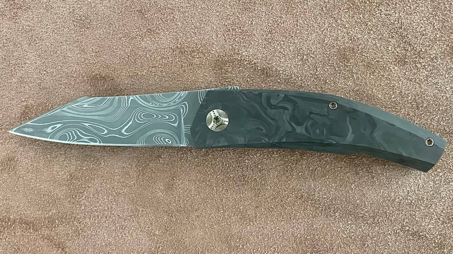 Couteau artisanal de Alain et Joris Chomilier damas - CarboneCouteau pliant artisanal de Alain & Joris Chomilier.