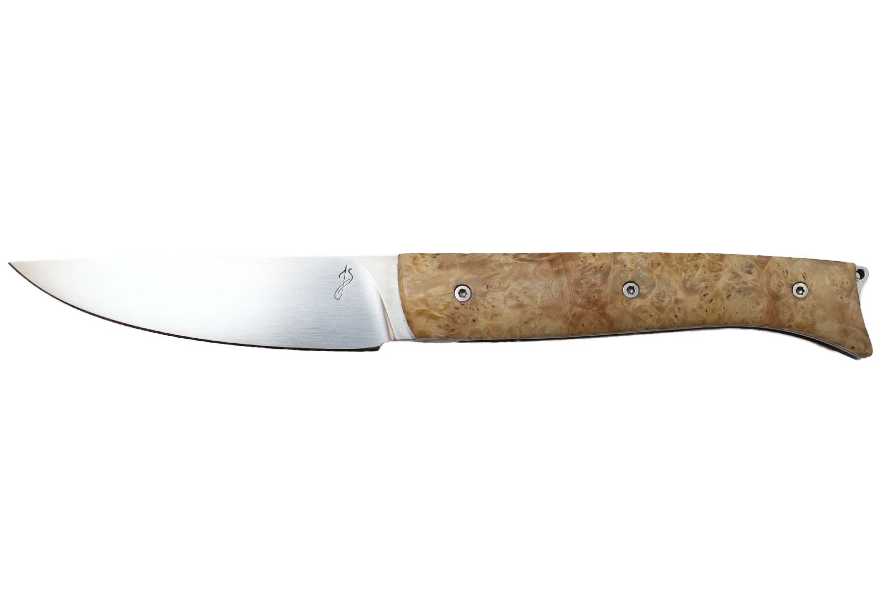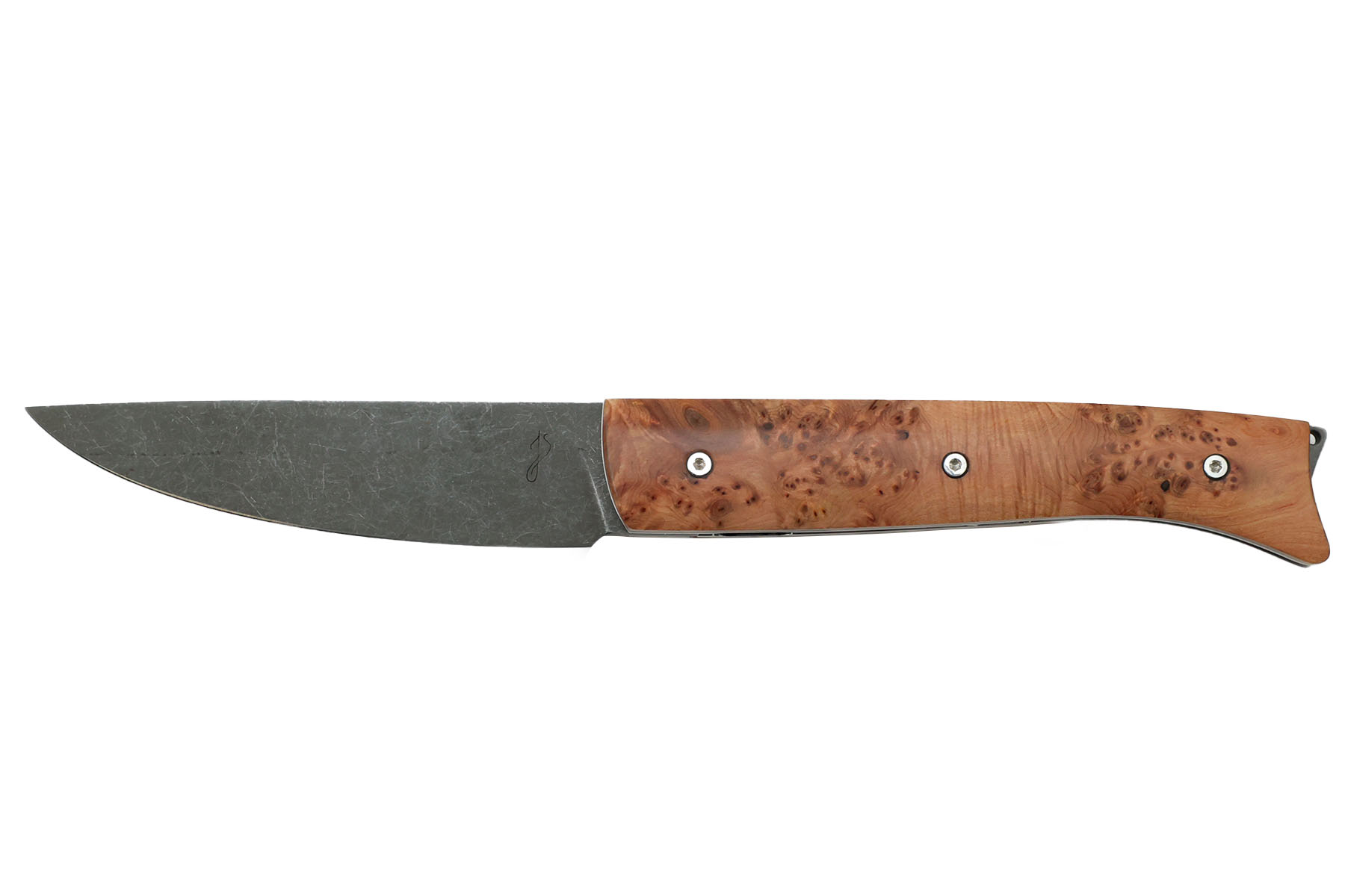 Couteau artisanal de jérôme Symphorien modèle Légato - Érable négundo stabiliséeCouteau pliant artisanal de Jérôme Symphorien #185modèle "Légato".