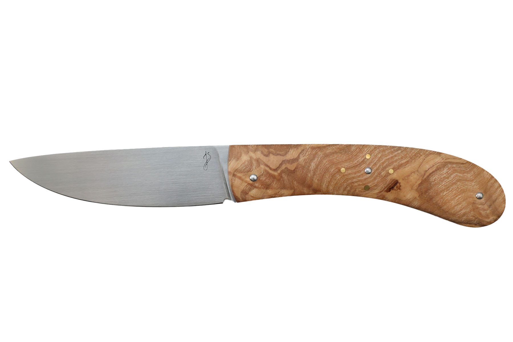 Couteau artisanal de Jérôme Symphorien modèle Rondo - Frêne olivierCouteau pliant artisanal de Jérôme Symphorien #237modèle "Rondo".