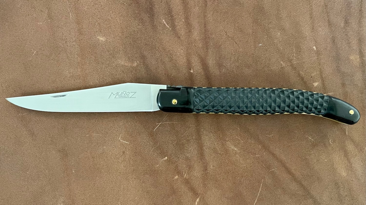 Couteau Laguiole Virgilio Munoz "MOF" modèle Ananas - ébèneCouteau Laguiole de l'artisan Virgilio Muñoz, meilleur ouvrier de France (MOF) - Laguiole modèle Ananas