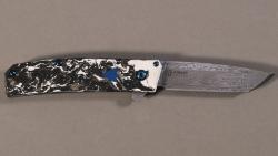 Lame en acier CPM S30V  noire avec son tranchant lisse, forme Drop point.