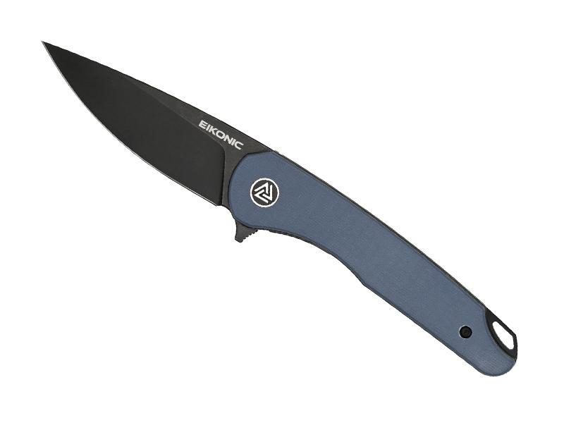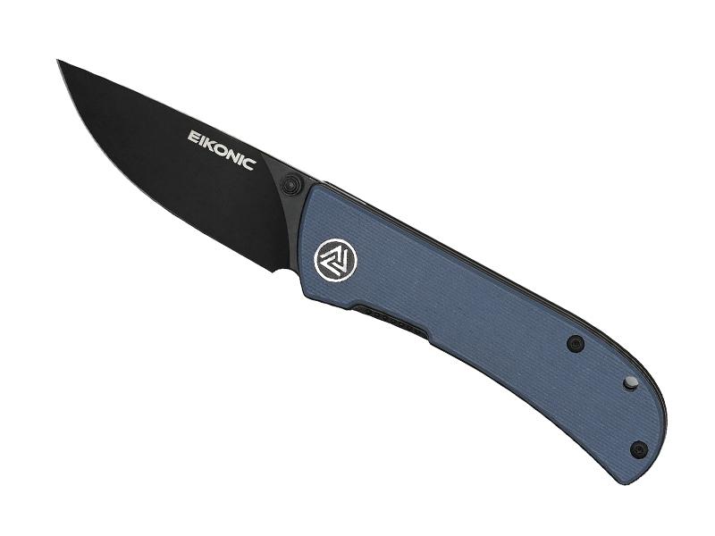 Couteau pliant Eikonic Dromas  - Lame acier D2 revêtement PVD noir - Manche 11,5 cm G10 bleu - Design : Brian Brown.