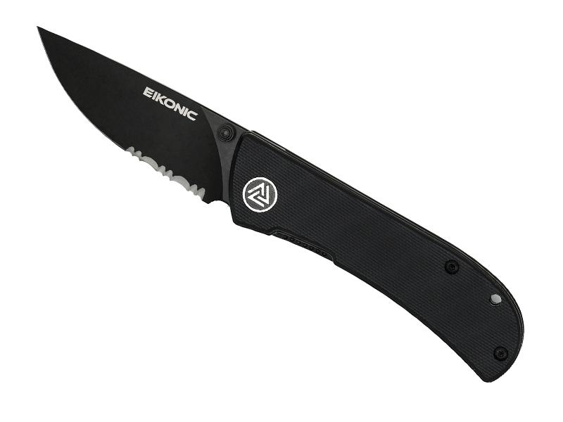 Couteau pliant Eikonic Fairwind - Lame semi-dentée - Manche 10 cm G10 noir - Design : HEA Designs.