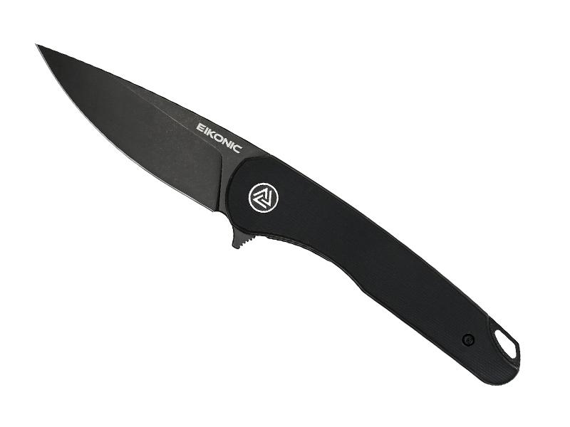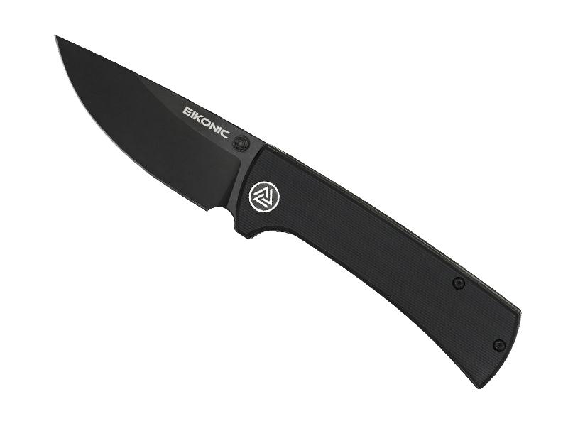 Couteau pliant Eikonic Dromas - Lame acier revêtement PVD noir avec flipper - Manche 11,5 cm  G10 noir -Design : Brian Brown.