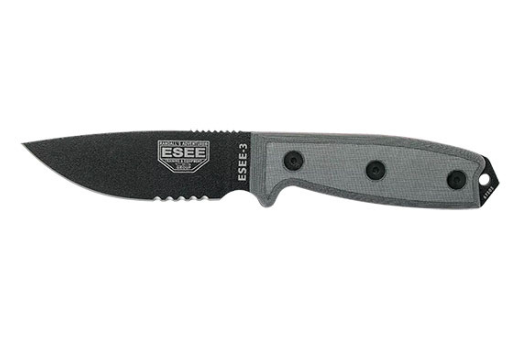 Couteau de survie avec demi-garde Esee " 3 Gris/Noir "