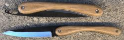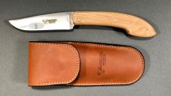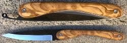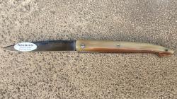 Couteau muni d'une lame de 7.5 cm en acier inoxydable 12C27 et d'un manche de 9 cm doté de plaquettes en buis.