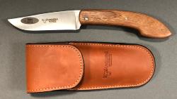 Couteau muni d'une lame de 7.5 cm en acier inoxydable 12C27 et d'un manche de 9 cm doté de plaquettes en amourette.
